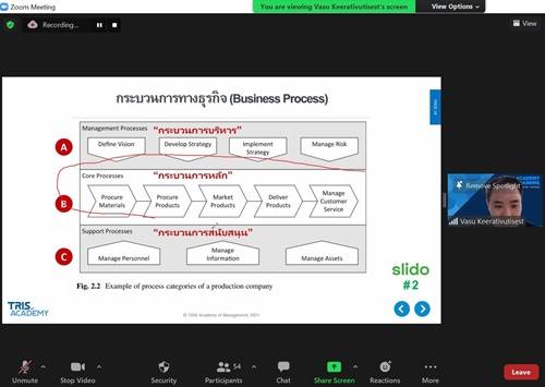 สถาบันวิทยาการจัดการ (TRIS Academy of Management) ทริส คอร์ปอเรชั่น ได้จัดอบรมหลักสูตรการออกแบบระบบงาน (Work System Design) ในรูปแบบ online training เมื่อวันที่ 9 มิถุนายน 2564 ให้กับพนักงานที่ปฏิบัติงานด้านระบบงานและกระบวนการทำงาน การรถไฟฟ้าขนส่งมวลชนแห่งประเทศไทย เพื่อสร้างความรู้ ความเข้าใจเกี่ยวกับระบบงาน กระบวนการทำงาน และ SLA ของกระบวนการทำงาน ทำให้ผู้เข้าร่วมฝึกอบรมสามารถระบุความเชื่อมโยงระหว่างกระบวนการทำงานที่รับผิดชอบกับระบบงานขององค์กรได้ โดยวิทยากรผู้ทรงคุณวุฒิ สถาบันวิทยาการจัดการ ดร.วสุ กีรติวุฒิเศรษฐ์